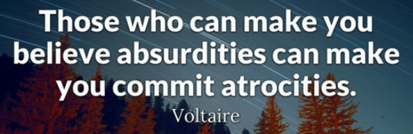 Voltaire told us that those who can convince us to believe absurdities can get us to commit atrocities. Would you like to see a sample list of absurdities that you were taught to believe? Calories = Energy Units in the human digestion process. Sunshine is bad for you. Dietary fat is bad for you. CarbohydratesContinue reading “Unwitting Self-Harm”