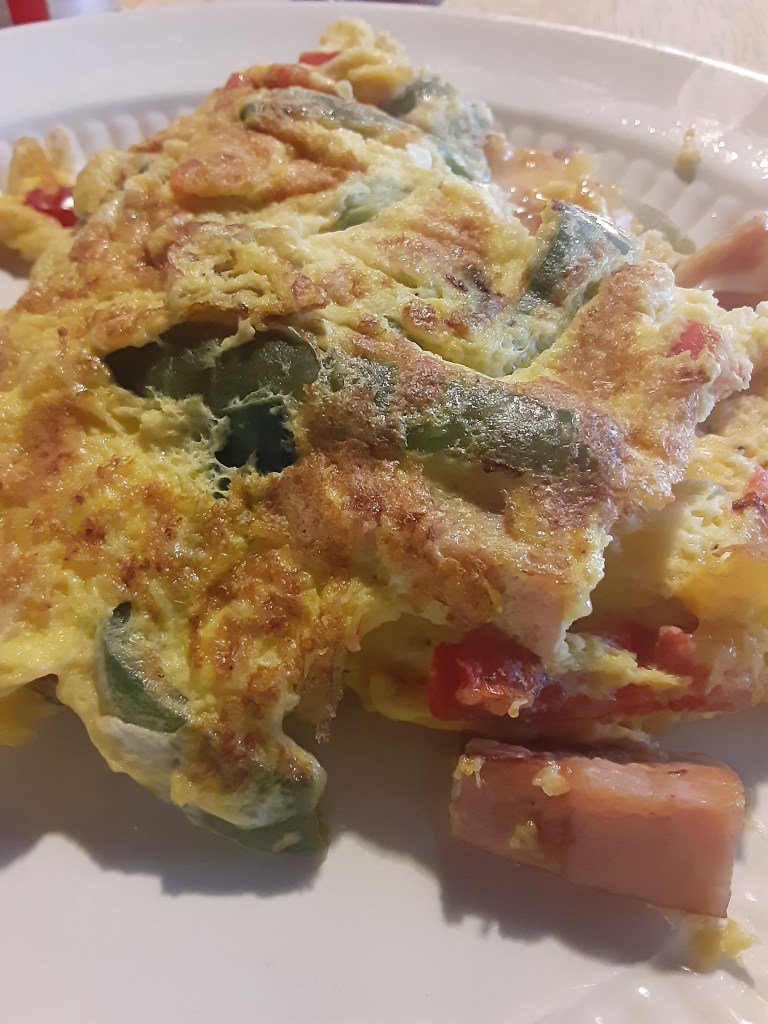 Thinking about this little fact, means that the butter is better, as are the eggs. INSTEAD OF BREAD- we add things. Today, I asked her to use mixed peppers in mine. There will be cheese, and that cheese will be inferior cheese.